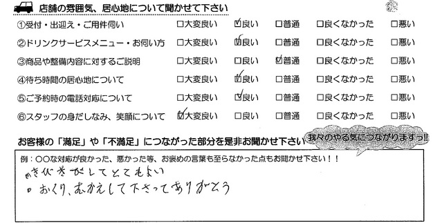 ・きびきびしてとてもよい ・おくり、むかえして下さってありがとう