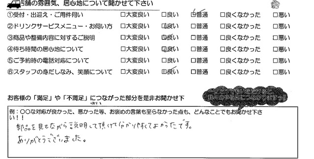 部品を見ながら説明して頂けて、分かりやすくてよかったです。ありがとうございました。