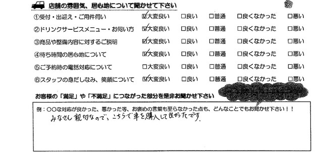 四日市市 T様 みなさん親切なので、こちらで車を購入して良かったです。