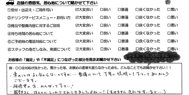 車のことはよく分からないのですが・・・整備について丁寧に説明して下さってありがとうございます。 研修中の方、がんばって下さい! 服部さん、ほんとにしっかりされてきましたよねー!(すみません、失礼な言い方で・・・)