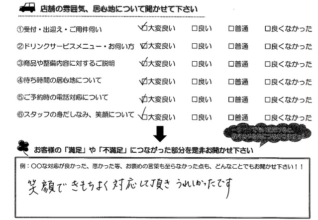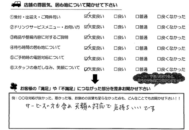 大変気持ち良く対応していただけました。 居心地良かったです。