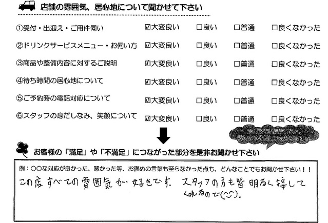 この店すべての雰囲気が好きです。スタッフの方も皆明るく接してくれるので(^^)