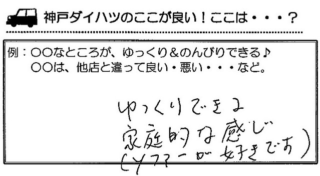 ゆっくりできる家庭的な感じ(ソファーが好きです)