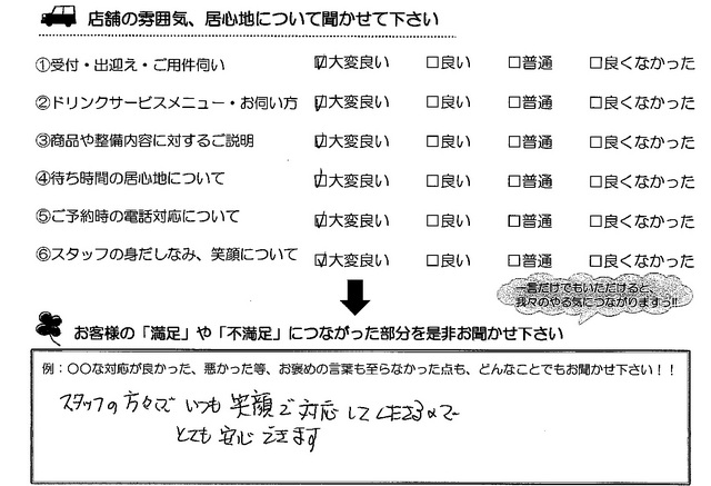 スタッフの方々がいつも笑顔で対応してくださるのでとても安心できます。