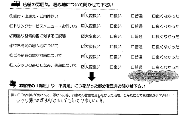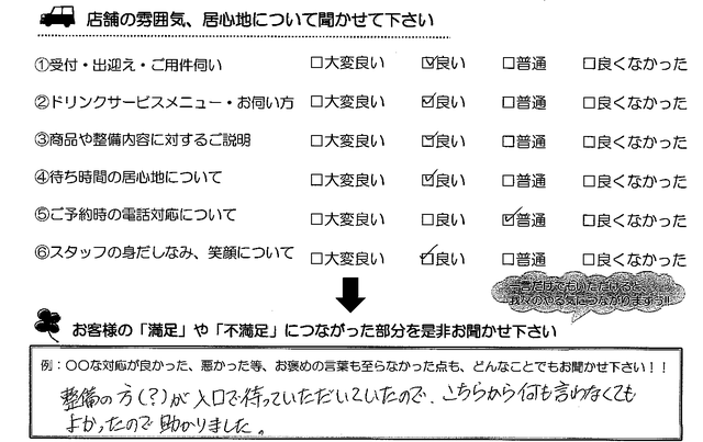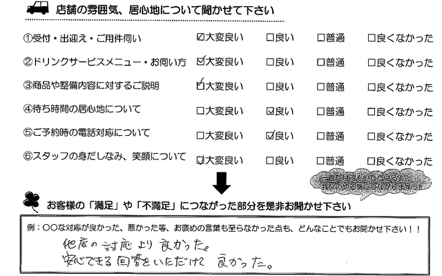 他店の対応より良かった。 安心できる回答をいただけて良かった。