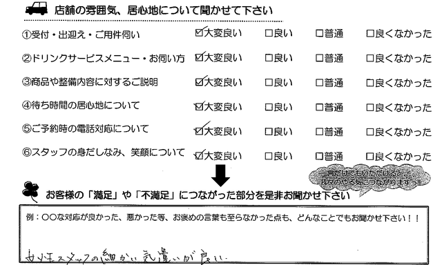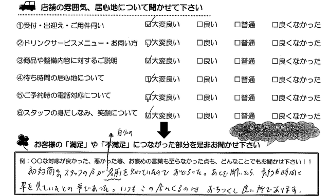 初対面のスタッフの方が自分の名前を知っていたのでおどろいた。あとで聞いたら、予約時間と車を見ていたとの事であった。いつもこの店にくるのは、おちつくし良い所であります。