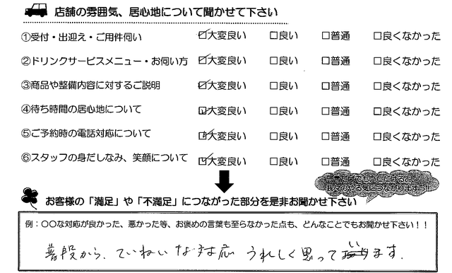 白子駅前 S様 普段から、ていねいな対応うれしく思っています。