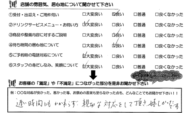 遅い時間にもかかわらず、親切な対応をして頂き、嬉しかったです。