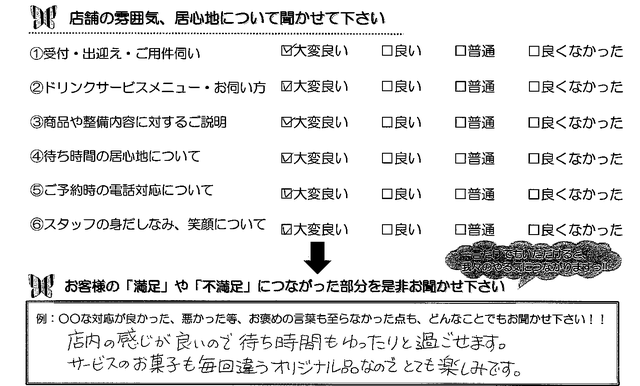 店内の感じが良いので待ち時間もゆったりと過ごせます。 サービスのお菓子も毎回違うオリジナル品なのでとても楽しみです。