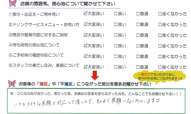 いつもステキな笑顔で対応して頂くので、私まで笑顔になっちゃいます♡