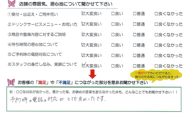 野町東 N様 予約時の電話の対応がとても良かったです。