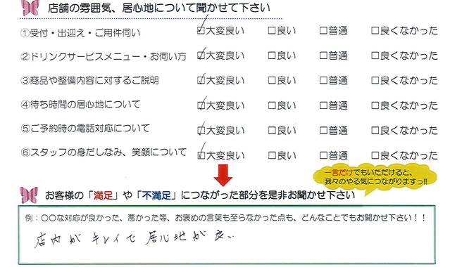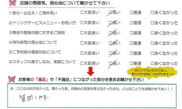 明るい対応が良かったと思う。