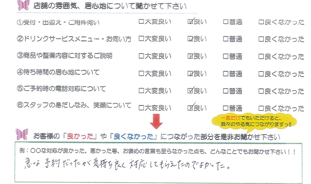 急な予約だったが気持ち良く対応してもらえたのでよかった。