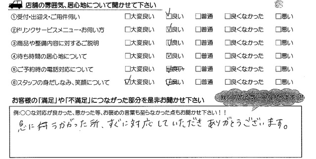 ご来場の際、ご協力いただけたお客様アンケートの当選者様、1.2.3.4月分を発表させていただきます。