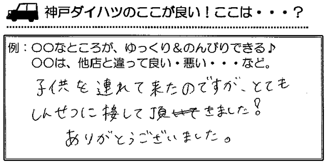 子供を連れて来たのですが、とてもしんせつに接して頂きました!ありがとうございました。
