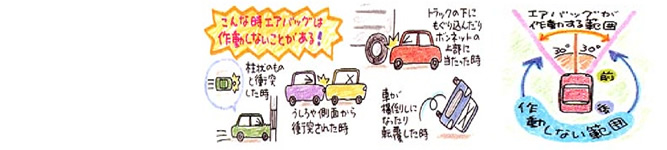最近の交通事故での死亡数減少の要因として、エアバッグなどの安全装置の進歩が挙げられています。でもエアバッグ単体は万能ではありません。あくまで、シートベルトをしていることが前提で機能する補助装置なのです。シートベルトの代わりではありません。逆にシートベルトをしていなければ、ほとんどその効果は得られません。またエアバッグは、作動しない場合が多いのをご存知ですか。