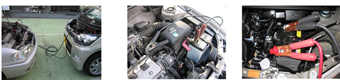 (7)故障車のエンジンが始動したら応援車のエンジンを停止し、接続したときと反対の手順でブースターケーブルを取り外します。