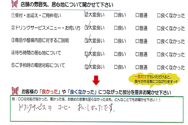 毎月店舗にお越しいただいたお客様よりたくさんのお言葉をいただいております。 ほんの一部ではありますがご紹介いたします。
