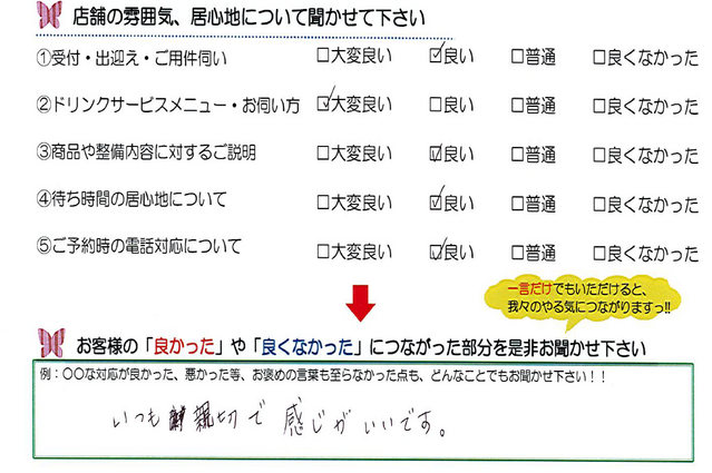 毎月店舗にお越しいただいたお客様よりたくさんのお言葉をいただいております。 ほんの一部ではありますがご紹介いたします。