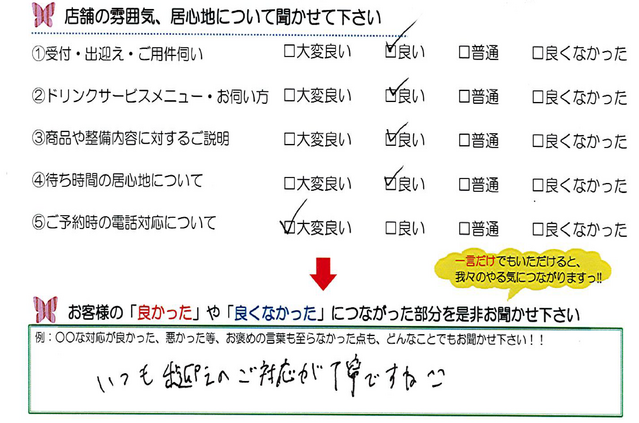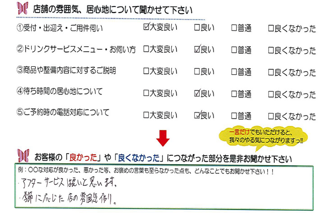 毎月店舗にお越しいただいたお客様よりたくさんのお言葉をいただいております。 ほんの一部ではありますがご紹介いたします。