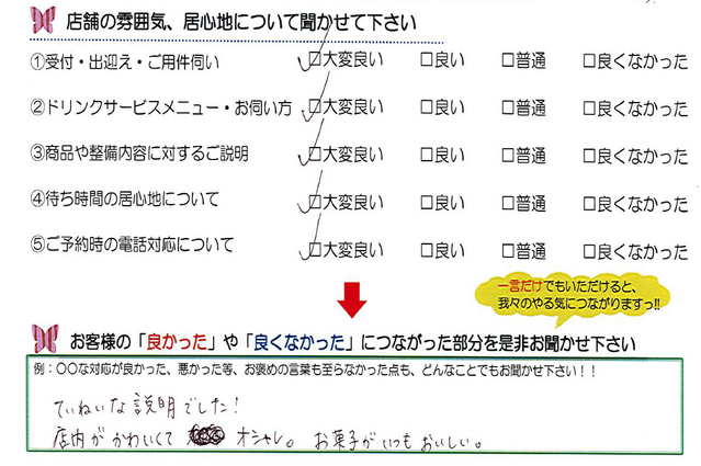 毎月店舗にお越しいただいたお客様よりたくさんのお言葉をいただいております。 ほんの一部ではありますがご紹介いたします。
