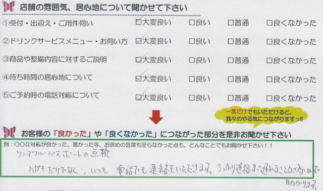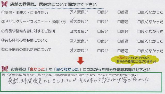 突然、時間変更をしてしまったが、その時の対応が丁寧で良かった。