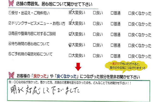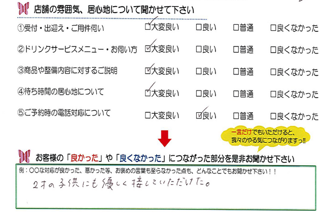 毎月店舗にお越しいただいたお客様よりたくさんのお言葉をいただいております。 ほんの一部ではありますがご紹介いたします。