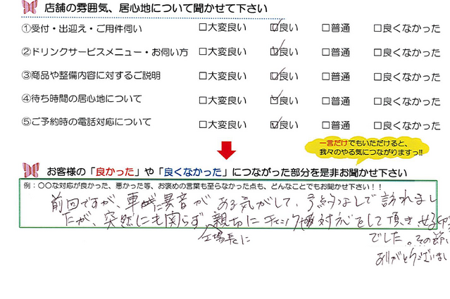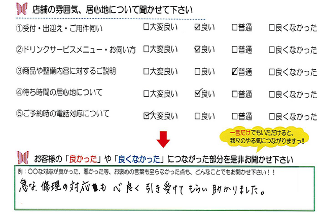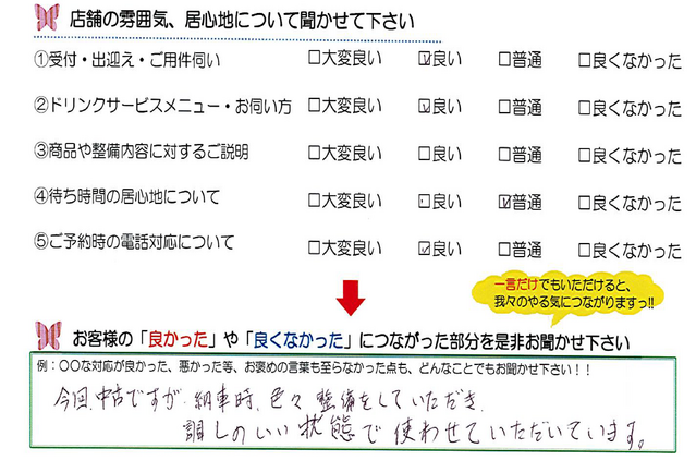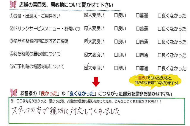 毎月店舗にお越しいただいたお客様よりたくさんのお言葉をいただいております。 ほんの一部ではありますがご紹介いたします。