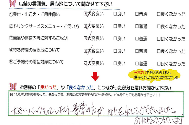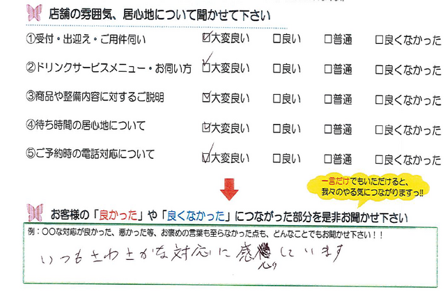 毎月店舗にお越しいただいたお客様よりたくさんのお言葉をいただいております。 ほんの一部ではありますがご紹介いたします。