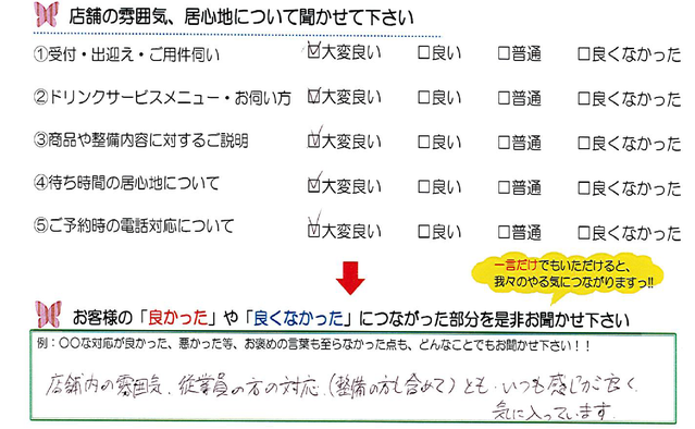 毎月店舗にお越しいただいたお客様よりたくさんのお言葉をいただいております。 ほんの一部ではありますがご紹介いたします。