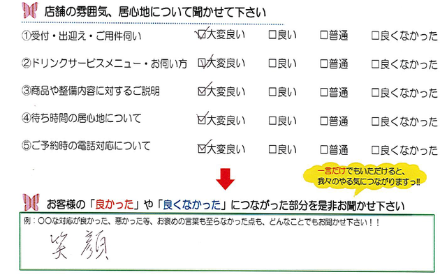 毎月店舗にお越しいただいたお客様よりたくさんのお言葉をいただいております。 ほんの一部ではありますがご紹介いたします。