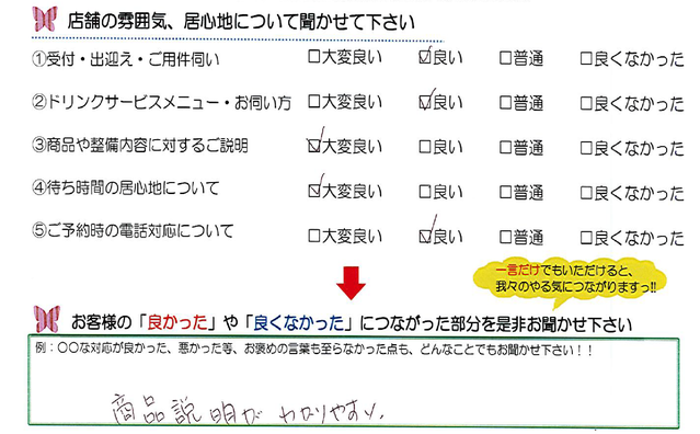 毎月店舗にお越しいただいたお客様よりたくさんのお言葉をいただいております。 ほんの一部ではありますがご紹介いたします。