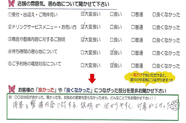 毎月店舗にお越しいただいたお客様よりたくさんのお言葉をいただいております。 ほんの一部ではありますがご紹介いたします。
