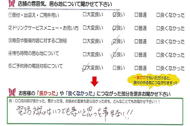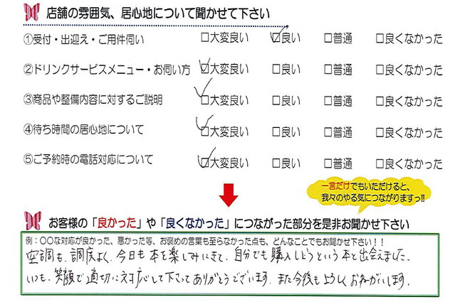 毎月店舗にお越しいただいたお客様よりたくさんのお言葉をいただいております。 ほんの一部ではありますがご紹介いたします。