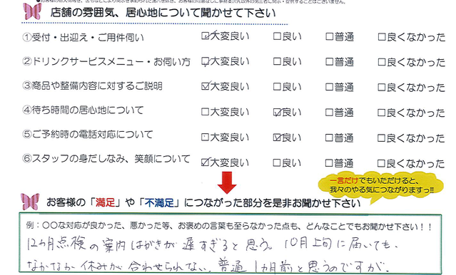 毎月店舗にお越しいただいたお客様よりたくさんのお言葉をいただいております。