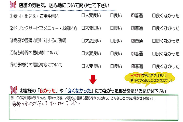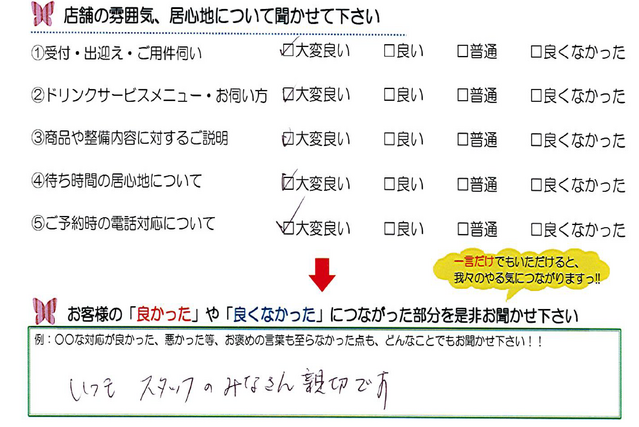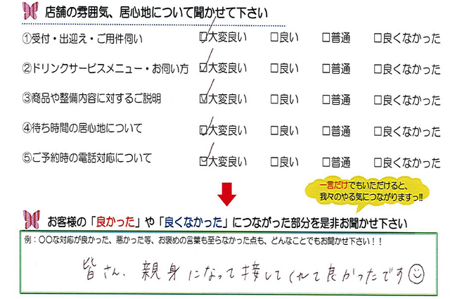 毎月店舗にお越しいただいたお客様よりたくさんのお言葉をいただいております。 ほんの一部ではありますがご紹介いたします。